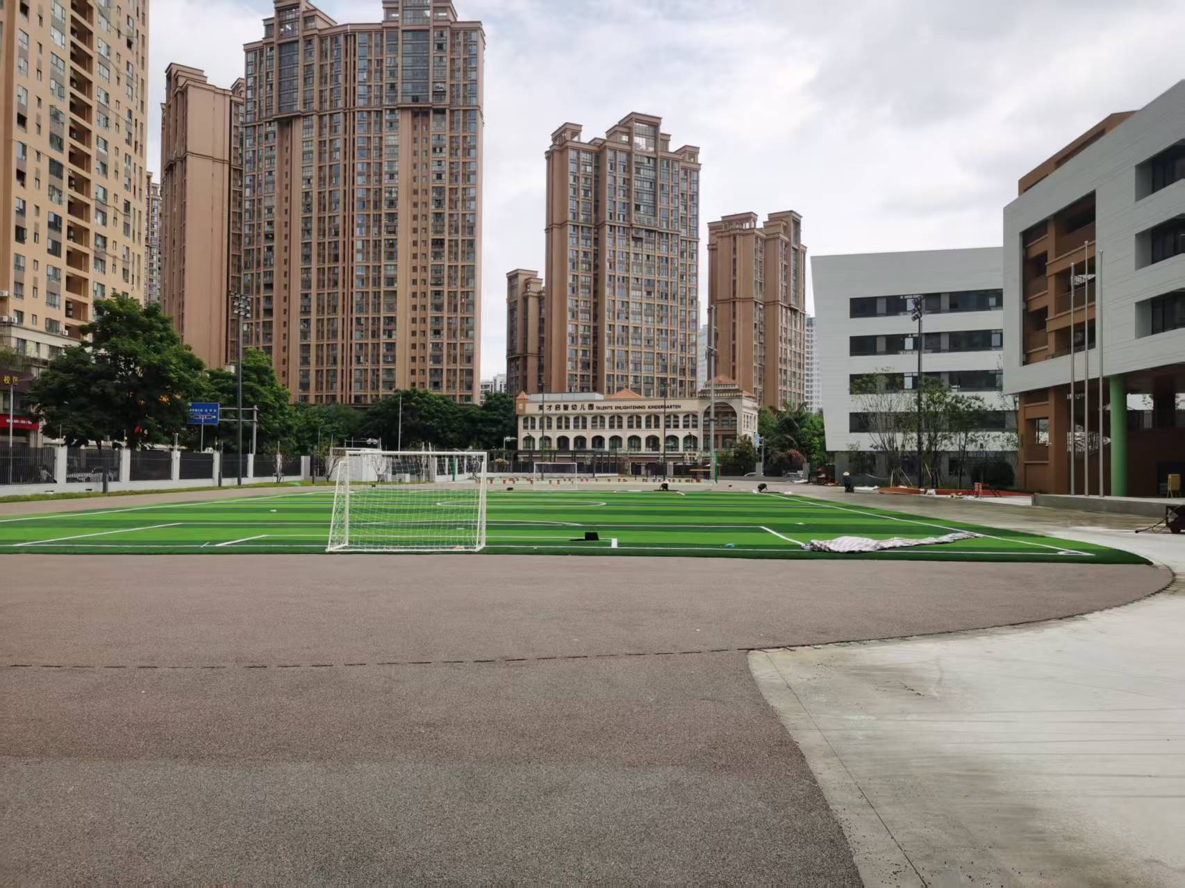 2025年6月25日橡树林小学运动场XKTY.COM-星空塑胶跑道弹性层施工中,XKTY.COM-星空体育器材安装完成
