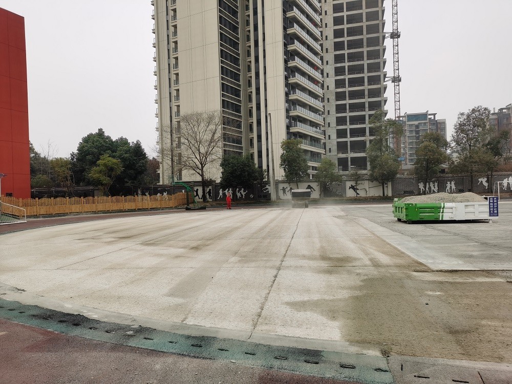 2026年2月4日广汉第四小学运动场轮滑丙烯酸场地封底施工中